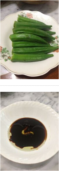 白灼秋葵的材料:秋葵200克,橄榄油,酱油,芥末 美食网 白灼秋葵的做法: 1.秋葵洗净,去蒂。 2.锅里煮水,水开后放秋葵入锅煮5分钟,煮好后捞起,装盘。 3.准备一个小碗,放入适量的橄榄油、酱油、芥末,拌匀,秋葵粘点芥末酱吃即可。 美食网