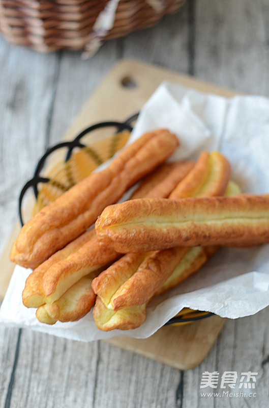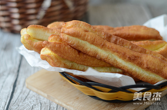 8.油热后放入油条坯。