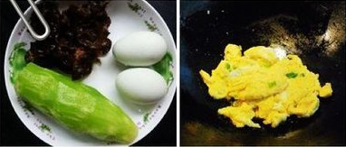2、油温葱炝锅,加入鸡蛋炒至鸡蛋稍熟,成形就盛出待用。