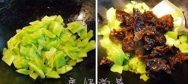 3、不用再加油,直接倒入莴笋翻炒,炒至稍软。