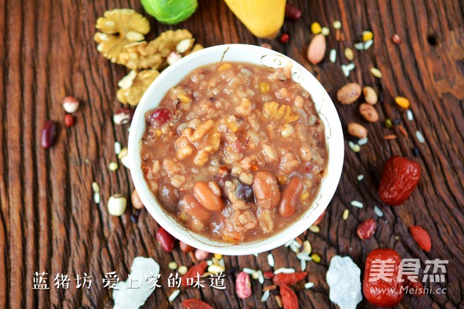 1.把除冰糖、核桃和银耳外的全部杂粮混合均匀,用清水淘米2-3次洗去杂质