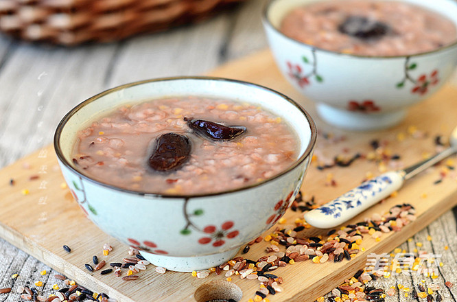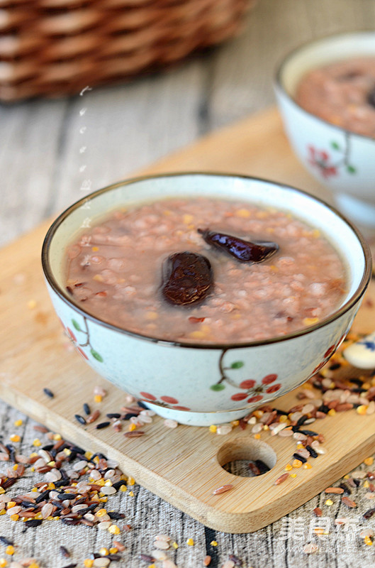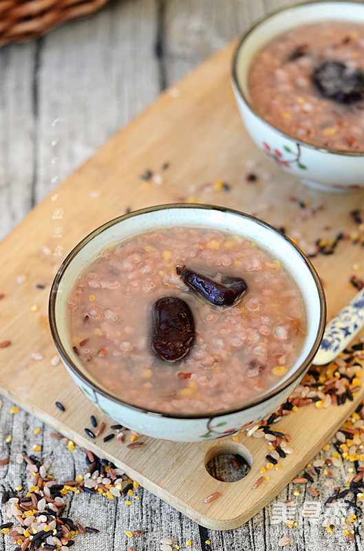在现代食物越来越精细的时候,适当的吃粗杂粮对养生来说非常有必要。这款杂粮粥有玉米、红米、黑米等食材,煮成粥营养好吸收。 主料 杂粮棒50克 辅料 红枣适量 杂粮红枣粥的做法 1.原料。 2.杂粮米、红枣洗净,放入压力锅。 3.加适量水。 4.定时25分钟。 5.煮好的粥,香糯粘稠。 烹饪技巧 如果您喜欢吃甜粥,吃的时候加点红糖也是不错的选择。
