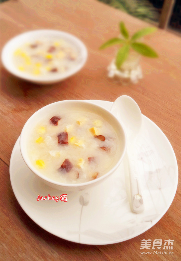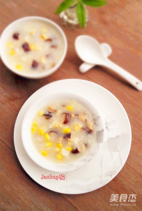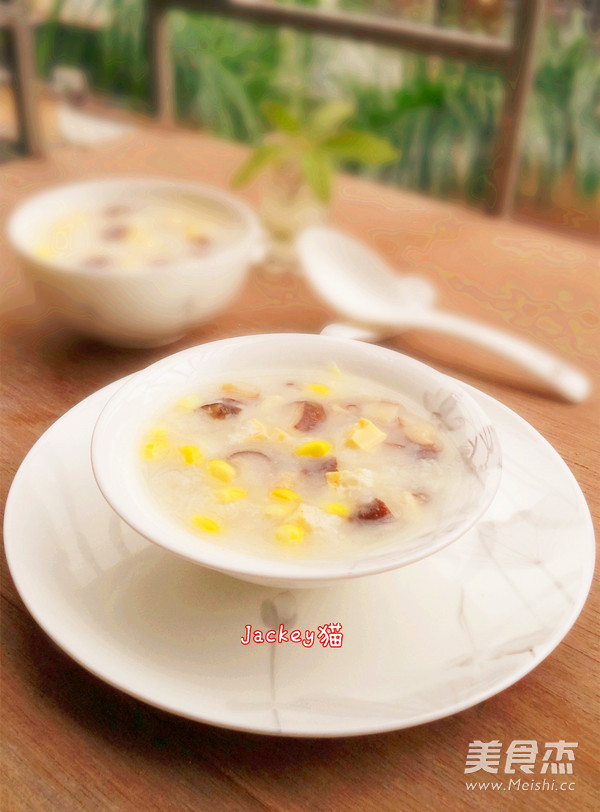 这是跟电视上学做的一款粥品,用意是消耗掉家里的咸蛋白的,猫就没特意把咸蛋黄取出,直接就用上了,猫继续沿用以往做明火粥的决窍,把粥煲的绵软香甜,咸蛋块吃在嘴里,不光有咸香味,还可以吃到蛋黄那独特的沙沙的口感,再加上有干香菇提鲜味,玉米粒增加口感,还有清香的甜味融入到粥里,一碗咸鲜可口的粥品,既营养又美味