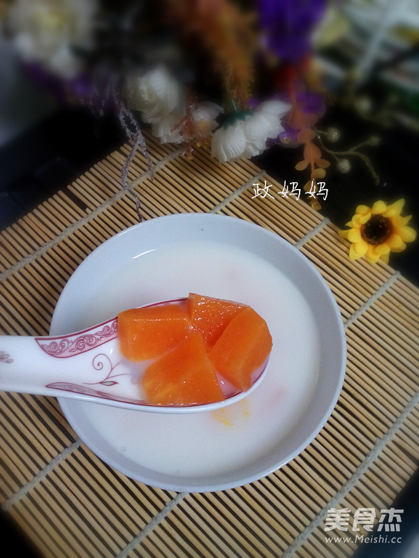 木瓜含有丰富的营养价值,含有丰富木瓜酶,维生素C、B及钙、磷及矿物质,营养丰富,果实含大量丰富的胡萝卜素、蛋白质、钙盐、蛋白酶、柠檬酶等,具有防治高血压、肾炎、便秘和助消化、治胃病,对人体有促进新节代谢和抗衰老的作用,还有美容护肤养颜的功效。木瓜入菜也很不错。 主料 木瓜半个 牛奶150毫升 冰糖1把 辅料 水适量 木瓜炖奶的做法 1.木瓜洗净切成两半,挖去种子。 2.去皮切成小块。 3.锅里加入适量水加入木瓜煮开。 4.煮开后加入冰糖。 5.加入牛奶再次煮开至冰糖全部融化即可。 烹饪技巧 喜欢奶香浓郁的可以直接用牛奶不用加水。