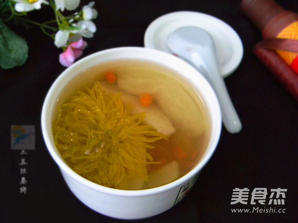 看似简单,却是一道功效很大的糖水茶饮。枸杞,枸杞可以和梨一起,有滋阴清火的功效,很适合上班经常熬夜的人喝,枸杞子可以提高皮肤吸收氧分的能力。菊花可清肝明目。两者配合在一起,一清一补,标本兼顾,加上梨的清凉去火,点个赞吧。
