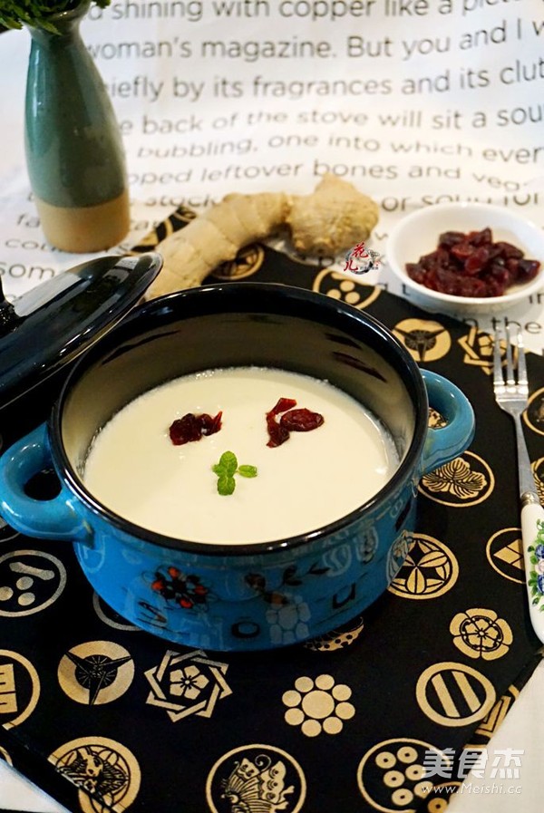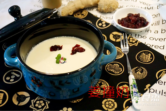 10.这里建议大家:如果不太喜欢姜的味道,您加一些蔓越莓干进去,本来蔓越莓干太甜,您放入姜撞奶,特别好吃,姜的辣味不明显了,蔓越莓也不过于甜了,是绝好的搭配。