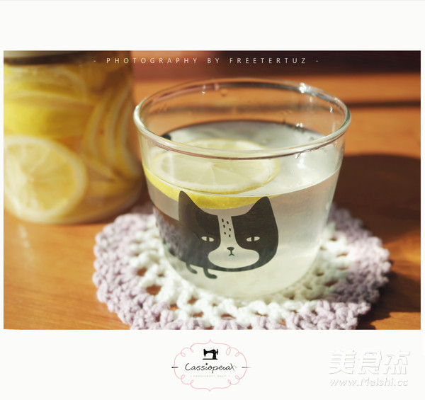 2.2mm厚度切好的柠檬片 放入密封罐内 倒入2大勺子白蜜 再倒入些水。盖好盖子