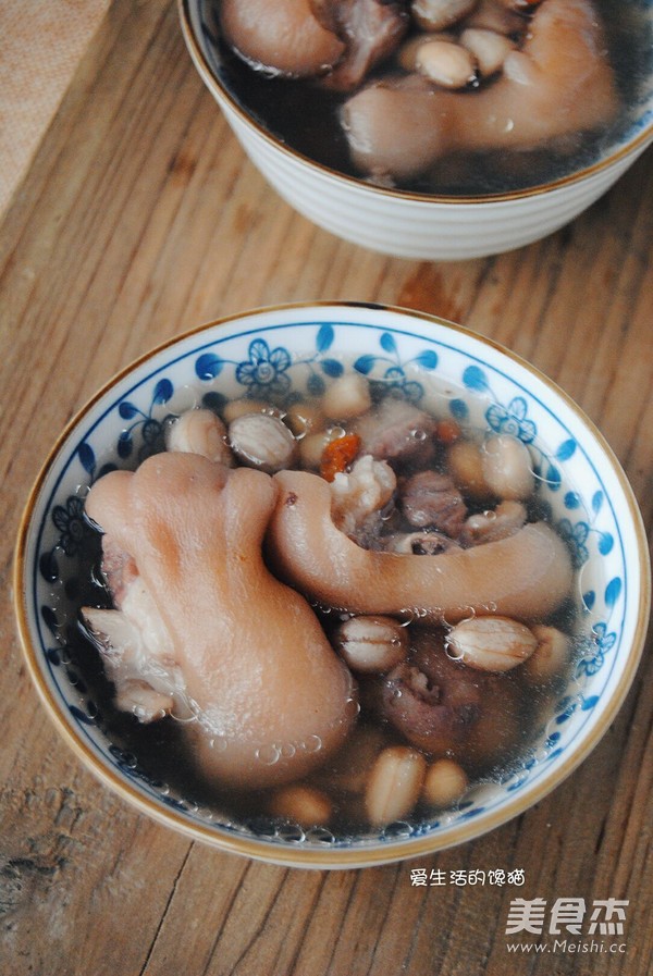 1.猪脚洗净,用菜刀刮干净皮毛,在市场买菜时让老板把猪脚都烧过一遍,花生用清水提前泡半小时