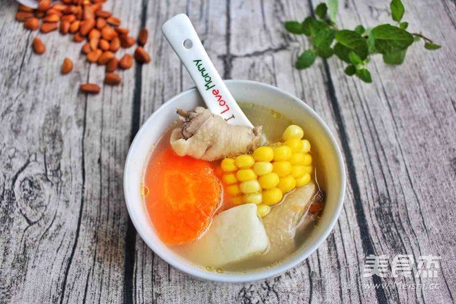 欢迎加微博@Love-sum 主料 鸡半只 玉米1根 胡萝卜1根 山药150g 辅料 水1.5L 快手汤胡萝卜玉米山药鸡肉汤的做法 1.鸡肉剁小块,用一茶匙盐腌3小时或以上 2.煲里装1.5L水,加入玉米、胡萝卜、姜片,中火煲15分钟,再加切片山药煲5分钟,熄火 3.吃前将汤煲沸,再加入鸡肉,煮3分钟就能吃 烹饪技巧 平常煲汤是肉先放,与蔬菜煲1小时左右,但是肉已老韧。这次我调转来,鸡肉先腌咸,蔬菜先煲,吃前加鸡肉,这样汤既有肉味,肉也嫩!重要是时间也缩短了