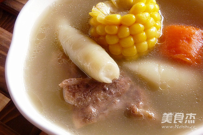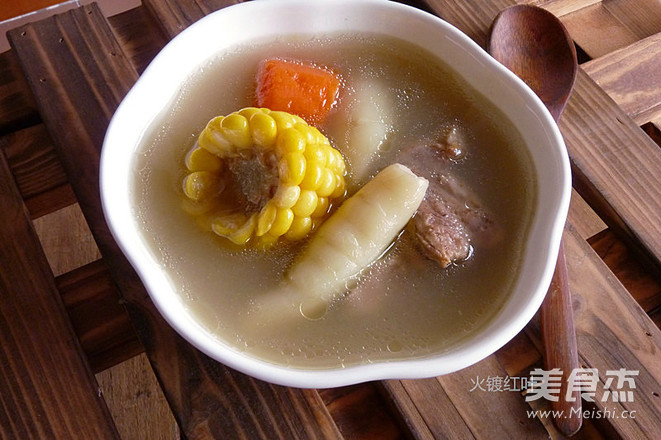 竹芋是广东人的煲汤常用材料,可清肺止咳;清热利尿,对肺热咳嗽;小便热痛都可有缓解作用。 主料 大骨400克 鲫鱼1条 辅料 盐适量 姜10克 玉米300克 胡萝卜200克 竹芋200克 白茅根50克 水适量 竹芋茅根汤的做法 1.备材料:肉骨出血水,鲫鱼用油、姜片煎过,红萝卜、玉米切大块 2.取一汤锅,放进所有材料与适量的水 3.加盖煲1.5小时以上 4.汤煲好后加入适量的盐,再煮5分钟,关火即可装碗饮用
