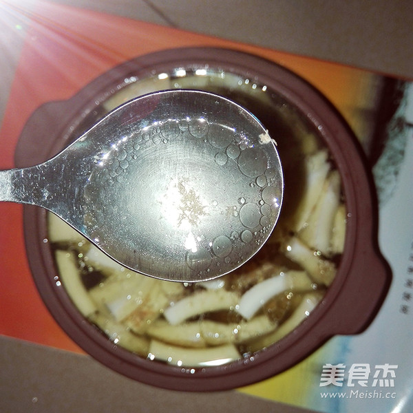 5.4个小时后,加入适量的盐和鸡精调味,美味的椰子鸡汤就出炉啦,汤非常的清甜好喝。