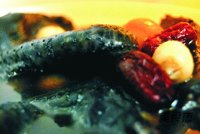 桂圆5颗 枸杞1把 莲子30克 红枣7颗 何首乌3块 黑豆30克 盐3克 胡椒粉2克 姜1块