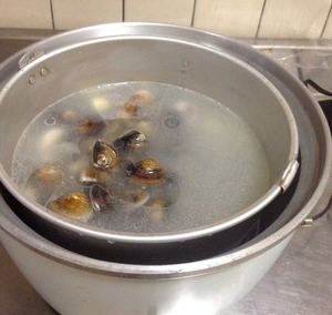 5、等到开关弹起后,在次入加哈唎,外锅中入米杯水,继续炖煮,当电源在次弹起后加入米酒,盐调味即可。