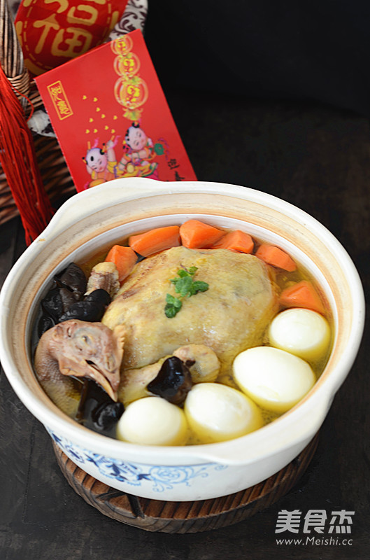 4.放入鸡,倒入原汤。