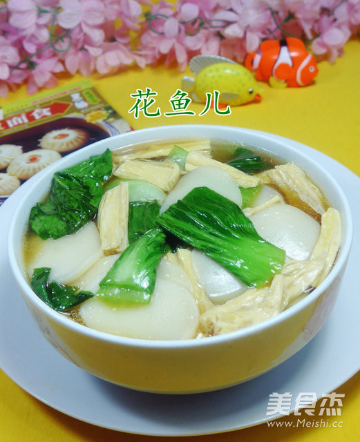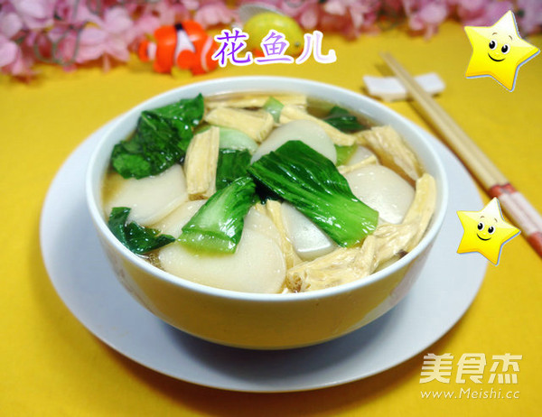 3.在锅中加入3汤勺油烧热,下入已清洗好的青菜翻炒一下。