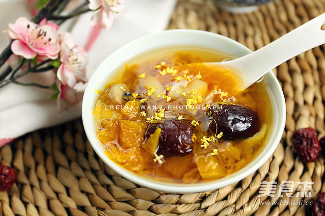 虽是甜汤,不过可以不放糖,以红枣和南瓜的糖分带出鲜甜,营养美味又健康。 主料 红枣15颗 南瓜1块 百合4个 辅料 干桂花2茶匙 #苏泊尔#红枣南瓜百合甜汤的做法 1.工具备齐; 2.主要材料备齐; 3.红枣用工具去核洗净备用; 4.南瓜去皮切块备用; 5.鲜百合去根去黑边,洗净泥土后沥干备用; 6.将所有材料放入苏泊尔压力锅内胆中,加足水; 7.以杂粮粥模式,压力将至最低,炖煮30分钟即可。 烹饪技巧 1、红枣去核后,食用口感更好; 2、不建议放糖,如果觉得甜度不够,可以待温热后加入适量蜂蜜更好。