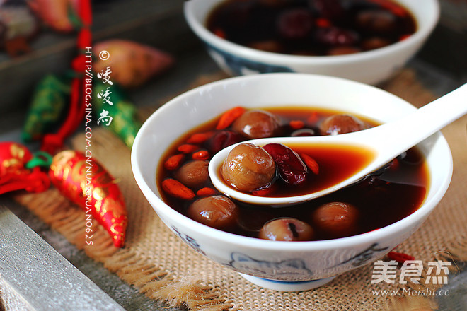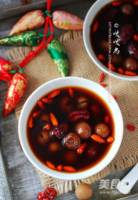 红枣、桂圆和枸杞三者都有补气养血的功效,能够从内到外的唤起好气色、延缓衰老。尤为适合长期熬夜或三十晚上熬宿的人们,来一碗热乎乎的还可以抵御深夜的严寒、预防感冒。而且此甜汤还有非常棒的寓意,团团圆圆、红红火火、甜如蜜糖,这应该也是我们对未来生活的期许吧。