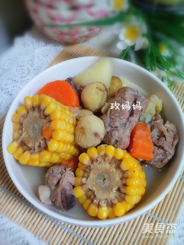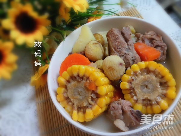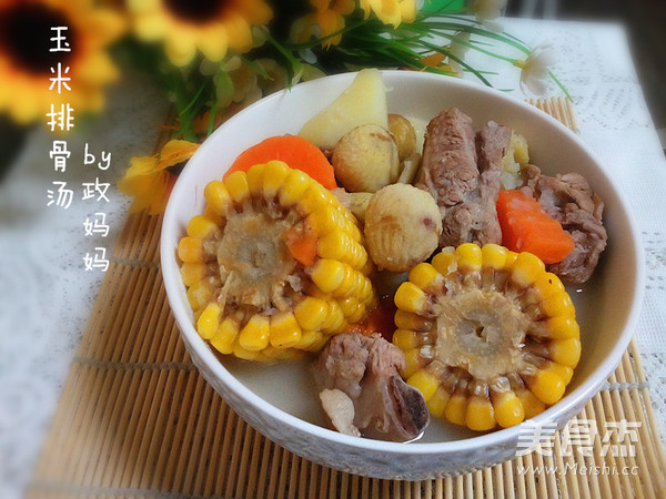 天冷的时候,炖一锅排骨汤,加入了玉米,热乎乎的来一碗,美味极了。 主料 玉米1根 排骨2根 栗子150克 胡萝卜半根 土豆1个 辅料 葱1根 姜3片 盐适量 排骨玉米汤的做法 1.排骨洗净焯水。 2.玉米洗净切成小段。 3.土豆,胡萝卜去皮洗净切成块。 4.栗子去皮洗净。 5.锅里加入排骨,加入适量水,加入葱,姜片。 6.加入土豆,胡萝卜。 7.加入玉米大火煮开,小火炖煮。 8.煮至汤汁浓白加入盐调味即可。 烹饪技巧 加水的时候多加一点,一次加足够量。