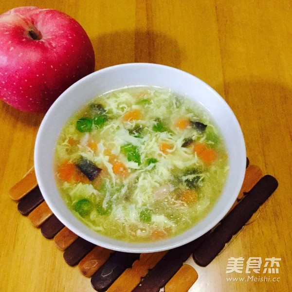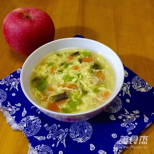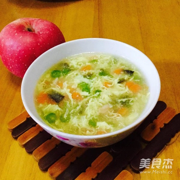 鸡蛋130克 猪肉50克 木耳5克 玉米50克 胡萝卜50克 蒜子5克 四季豆50克