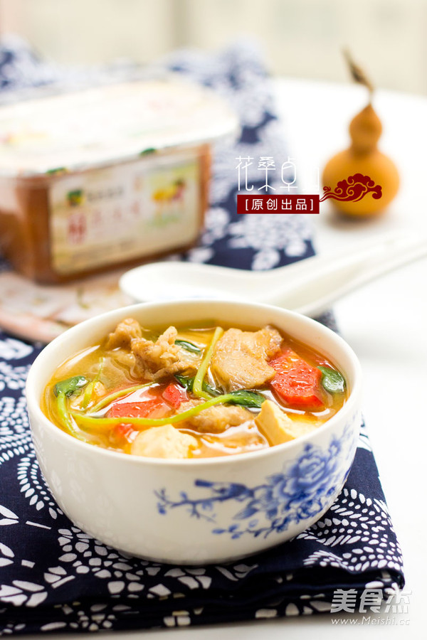 1、味噌汤要在待食材快熟时加入,煮沸后即可关火,切不可煮太长时间,煮太长时间就失去了味噌的那种鲜味; 2、这道菜中加入的豆腐,没有用刀切,是用手撕开的,手撕的话会出现凹凸不平的断面,更容易入味; 3、做这道汤,还可以根据自己的喜好,加入合适的菜,比如魔芋,白萝卜等食材; 4、五花肉要切的较薄,切的厚了,会有肥腻的口感。