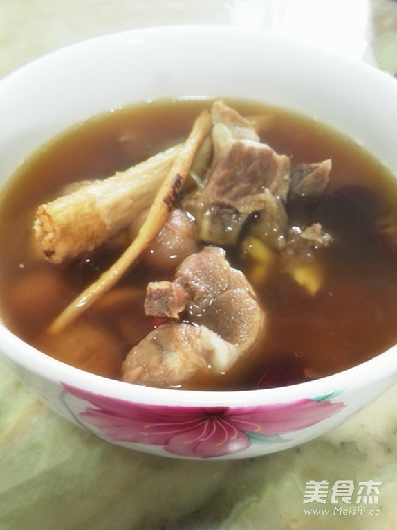 4.将已经飞水的骨头放入锅中和药材一起炖约1小时