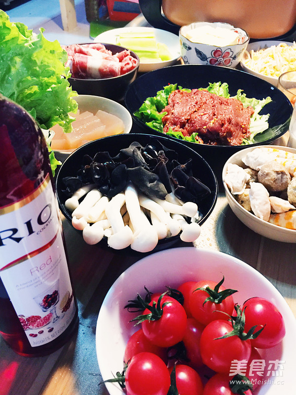11.准备上吃火锅喜欢的各种食材,自己做也尽量美观,会让你吃得更开心,环境也很重要哦!