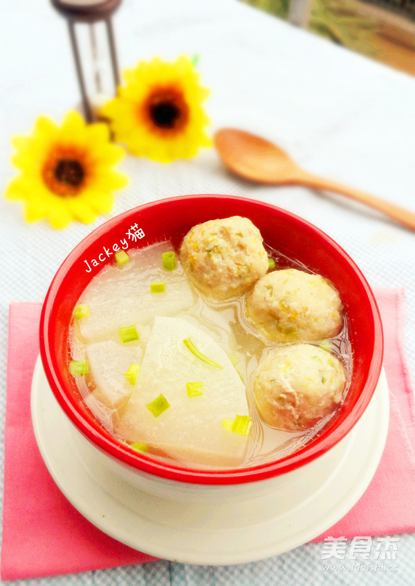 昨天LG就说今天不回家吃饭了,猫恰好今天休息,早晨睡到了日上三竿,中午醒的时候,已经是饥肠辘辘了,在冰箱里翻出一碗剩米饭,随便做了个蛋炒饭吃,晚上的时候,想着给自己做什么好吃的,左想右想都没决定好,最终还是决定做个清汤白萝卜,剁点肉末搓成丸子,做到汤里,就这样吃了,反正晚餐提倡少吃,咱就这一个汤搞定,别小看了这汤哦,营养着呢,有赛人参的白萝卜,和新鲜的猪肉做在一起,味道清淡鲜美,还具有食疗的作用