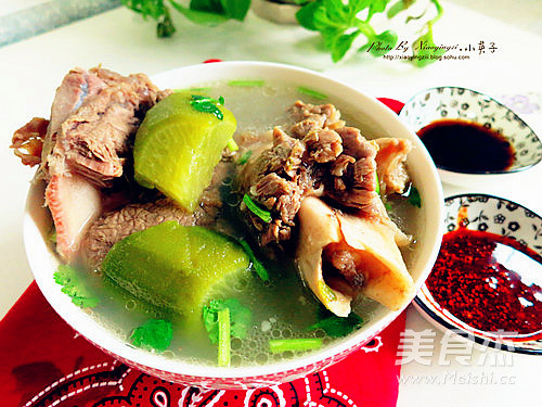 8.羊大骨煮到7成熟就是用筷子戳一下勉强能插进去将切好的萝卜放入一起煮