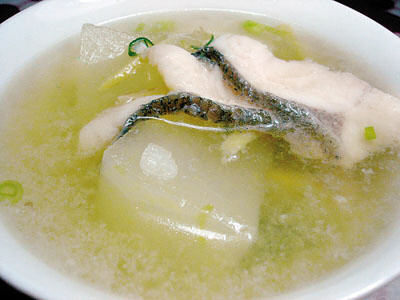 材料:生鱼500克,冬瓜600克,赤小豆60克,蜜枣20克,生姜2片,食盐适量。