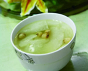 功效:具有消暑清热、利尿通便、解毒排脓之功效;连皮和瓤一起煲汤,利尿效果更佳。适宜汗多尿少、小便黄短、小便不畅、平素热气者饮用。
