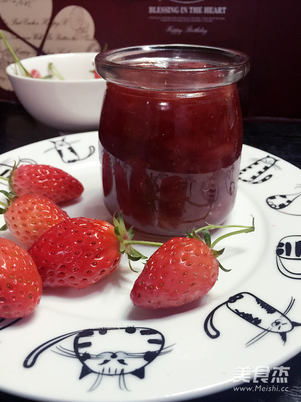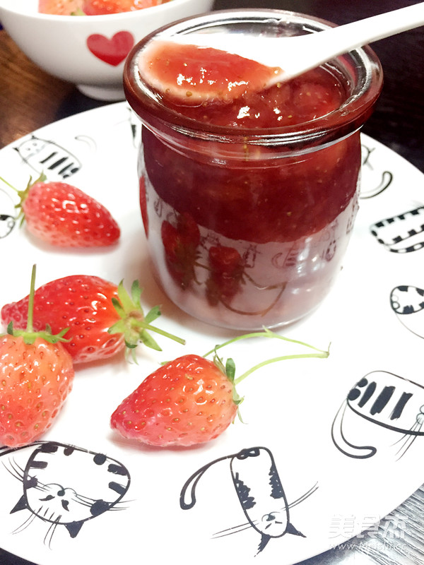 5.草莓酱完全凉透后,装入密封的玻璃瓶冷藏即可。记得将盛草莓酱的瓶子提前开水消毒后晾凉。