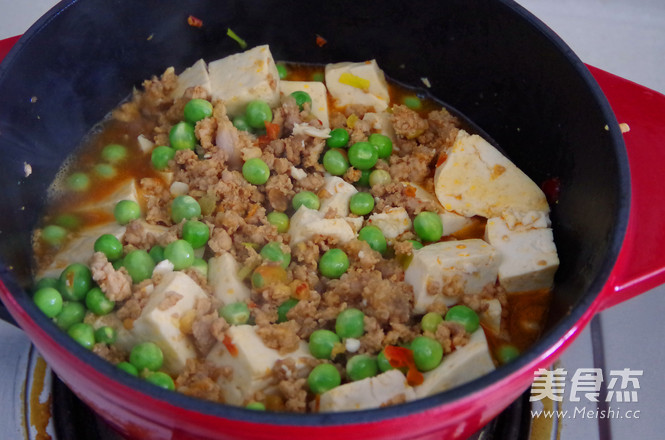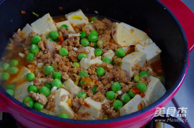 寒冷的冬天,还有什么能比一锅热乎的豆腐煲更暖胃更暖心呢,热腾腾的端上桌,吃到胃里,心也变得暖融融啦~ 主料 豆腐1块 肉末·小碗 青豆·小碗 辅料 豆瓣酱1勺 酱油2勺 白糖1茶匙 料酒半勺 姜末一撮 葱节几节 花椒粉1茶匙 青豆肉末豆腐煲的做法 1.准备好材料,豆腐切块备用。 2.肉末用姜末,一点酱油,料酒拌匀腌制十分钟。 3.锅里加入油烧热。加入葱末炒香,再加入豆瓣酱和花椒粉炒香。 4.下肉末划散炒熟。 5.加入青豆翻炒两分钟。 6.铺上豆腐,加入酱油和白糖盖上盖子焖十几分钟。 7.中途开盖轻轻地翻一下再煲几分钟即可。 烹饪技巧 豆腐煲的时间不宜太长,十来分钟即可。