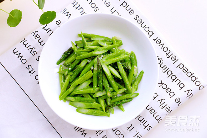 1.芦笋洗净切掉老化的根部,斜切成小段,蒜切末备用