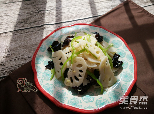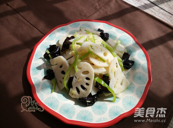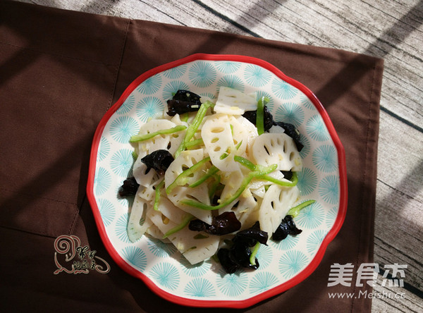 春节已经走远,那种腻腻的感觉还未减腿,时常想吃些清淡爽口的小菜,莲藕和黑木耳都是排毒减脂的好菜,吃起来口感爽脆,特别适合节后减肥哦。 主料 莲藕200克 辅料 黑木耳100克 青椒1个 姜末3克 盐1克 白砂糖1小勺 白醋15克 鸡精1克 橄榄油10克 凉拌莲藕黑木耳的做法 1.黑木耳提前一晚泡发去根洗净 莲藕去皮洗净切片 2.姜切末青椒切丝 锅内烧开水先放入木耳焯水两分钟再放入莲藕焯水一分钟 3.捞出过凉 控干水分 4.合入青椒丝和姜末 放适量糖和盐 5.再放适量鸡精和白醋 6.淋入橄榄油拌匀即可 烹饪技巧 木耳可以多煮一会儿,莲藕不要煮太久。