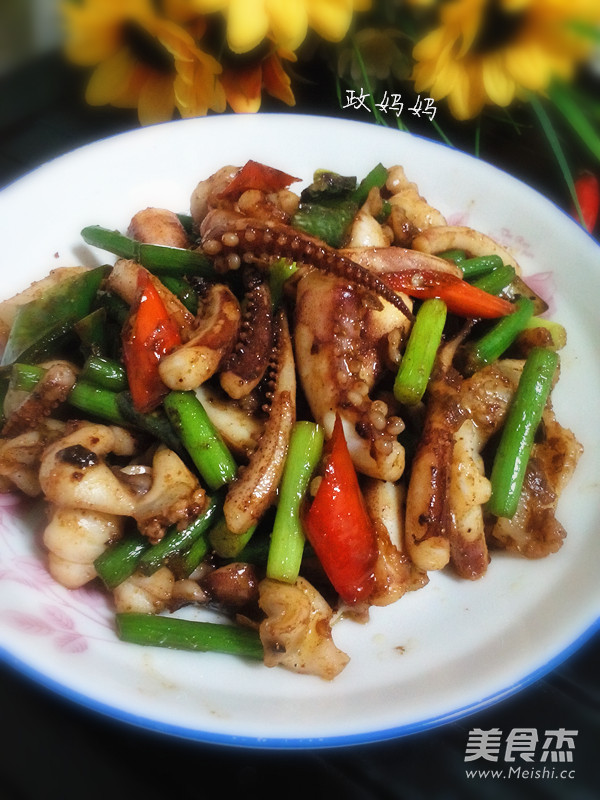 鱿鱼的营养价值很高,富含人体必需的多种氨基酸,鱿鱼中含有丰富的钙、磷、铁元素,对骨骼发育和造血十分有益,可预防贫血。这道孜然辣炒鱿鱼,香辣好吃,加入孜然,烧烤味浓。 主料 鱿鱼2个 蒜薹4根 辅料 油2勺 盐适量 辣椒3个 孜然粉1勺 孜然辣炒鱿鱼须的做法 1.鱿鱼头清洗干净。 2.切成段。 3.辣椒切小段,蒜薹洗净切小段。 4.鱿鱼须焯水后取出控干水分。 5.锅里油热加入辣椒,葱花炒香。 6.加入鱿鱼须煸炒一会。 7.加入蒜薹翻炒。 8.加入味极鲜酱油翻炒。 9.将鱿鱼须煸干后加入孜然,盐调匀即可。 烹饪技巧 炒鱿鱼时会出水,先将鱿鱼焯水后控干,炒的时候就不出水了。
