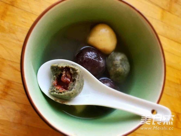 糯米粉和各种杂粮粉吸水性不一样,要少量多次加水,直到和成光滑的面团,第一次用杂粮做汤圆,装的馅料不多,感觉还是黑米面和糯米粉混合的最好吃。