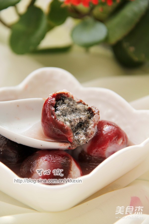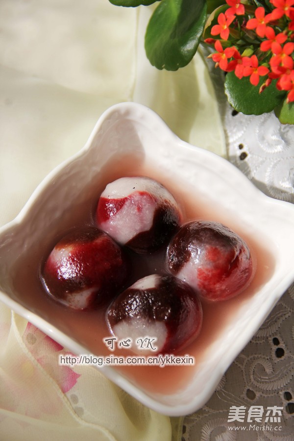这个雨花石汤圆我用了三种颜色的面团:原色、可可、红曲。三种颜色的面团交叉缠绕,每一个都组成了独一无二的花纹,特别独特和漂亮。比起纯白色的更能引起食欲。如果嫌麻烦可以用两种颜色的。没有可可粉和红曲粉,可以用任何带有颜色的菜汁。尽情发挥您的想象和创造力吧。只要稍微花一点小心思,你就会有意想不到的收获和惊喜。大家赶快行动起来吧!