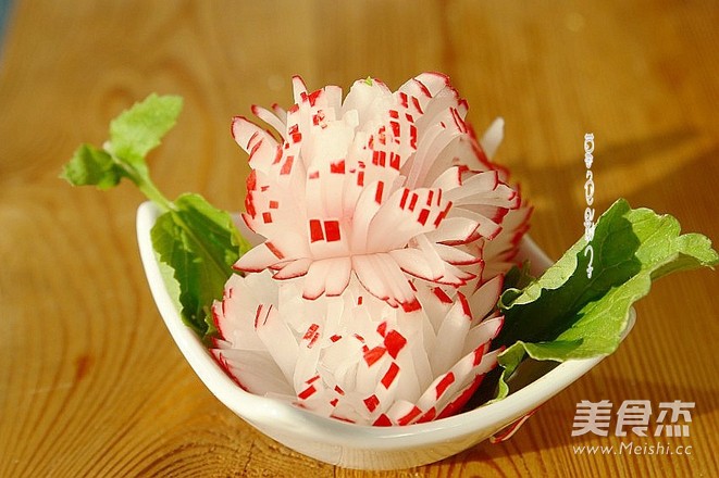 7.放在白醋和糖水里泡20分钟左右、花开了就可以上桌了