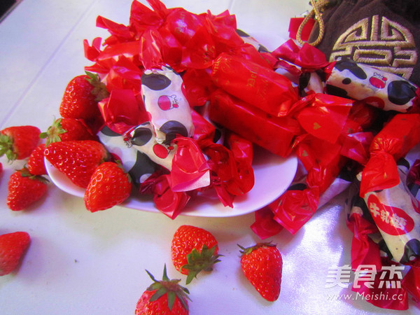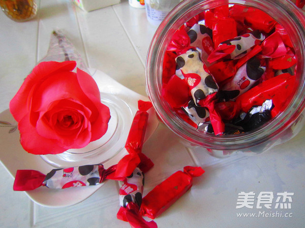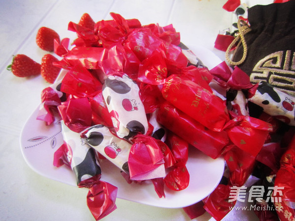 7.切好块后,就可以包糖纸了,红红火火的红色糖纸和花花牛糖纸 好漂亮