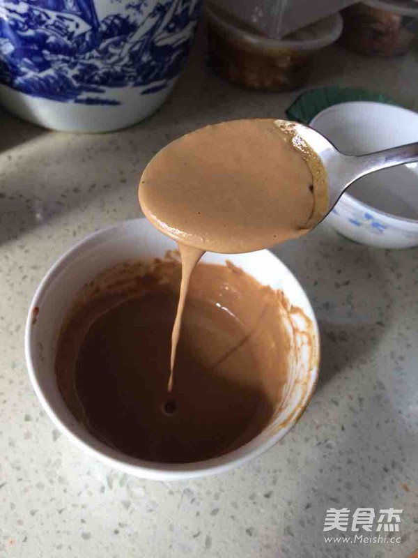 7.稠稀度如图,最后再浇入一点香油,搅拌。