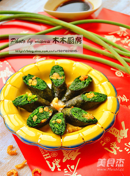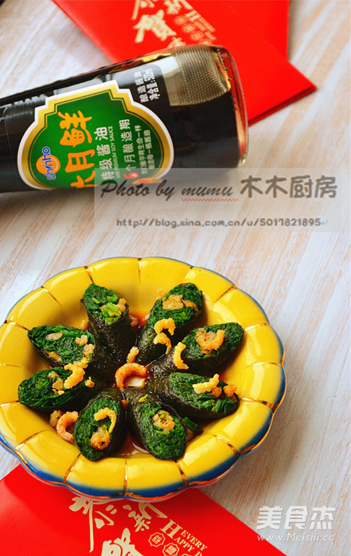 主料 菠菜适量 海苔1张 辅料 金钩100克 酱油适量 芝麻油适量 醋适量 鸡粉适量 盐适量 #六月鲜#紫气东来喜团圆---金钩紫菜卷的做法 1.准备食材 2.金钩入温水泡开 3.菠菜洗净分成小枝 4.开水里加少量食盐,菠菜入开水汆一下捞出 5.金钩入开水里汆一下捞出 6.用酱油醋芝麻油鸡精盐调成汁 7.金钩菠菜混合,用手挤掉多余的水分 8.铺好海苔,把菠菜金钩码在海苔边缘卷起,切成小段即可,最后淋上料汁