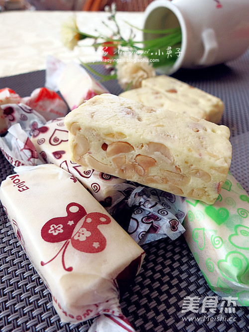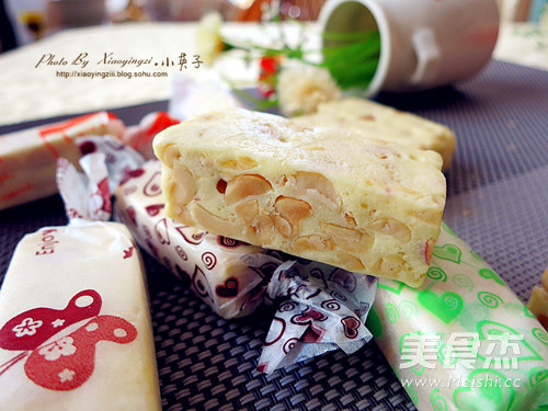 小英子心语: 1、使用的锅具一定要选择不粘锅,否则糖粘的到处是,不容易操作。 2、一定使用硅胶刮刀,这个谁用谁知道啊。 3、火一定要小,不然很容易糊掉。 4、做好的牛轧糖一定要放在不沾容器内,直至完全冷却,否则容易粘不好取出来。 5、棉花糖一定要选择白色的,无夹心的那种。 6、果仁可以根据个人喜欢调换,可以放核桃仁,美国大杏仁甚至蔓越莓干只要你喜欢的干果都可以放的。 7、烤花生的时候最后几分钟要在烤箱边注意观察,别烤糊了。 8、花生的颗粒大吃起来更有口感更香 9、花生保持微温做好的牛轧糖里的花生仁包的结实,太凉的做容易掉出来。