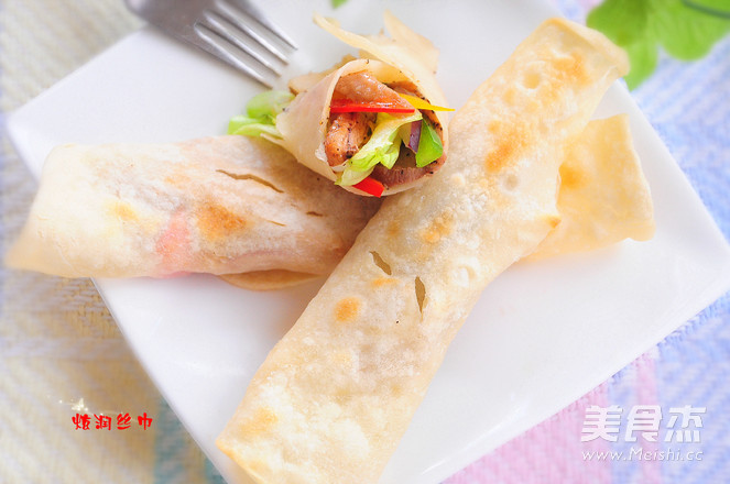 10.饼上放入自己喜欢的肉和菜,就可以美美地和家人一起享用了