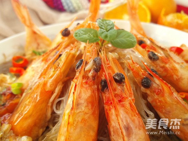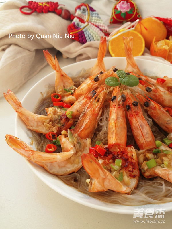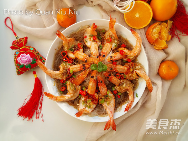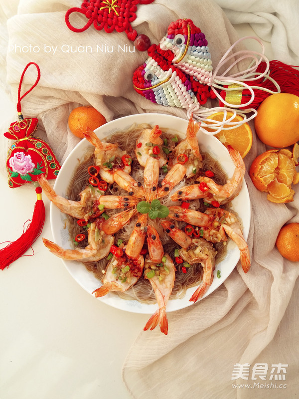 6.将虾摆放在粉丝上。