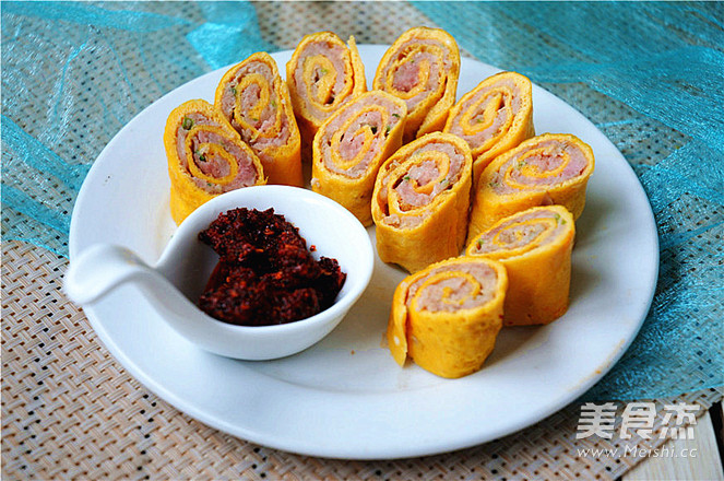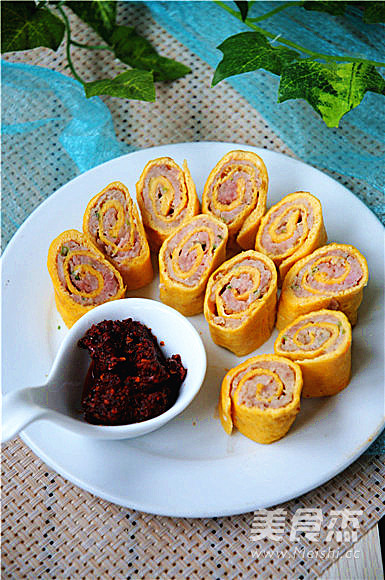 但是鸡蛋饺子可不是人人都会包呢,它对火候和手法的要求非常高,成家后我试过几次,虽然口感差不了多少,但是卖相总感觉差点意思,于是吧,我就将鸡蛋饺子变了个造型,嘻嘻,你要是也喜欢鸡蛋饺子,但是又感觉制作太难,那就试试这个鸡蛋卷吧!将肉肉藏在鸡蛋里,口感一样的细腻、铜钱一样的造型也非常喜庆哦,春节宴客非常有面子呢!