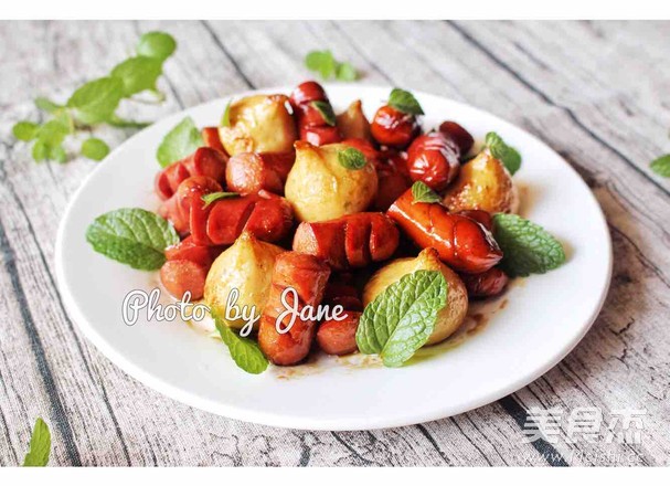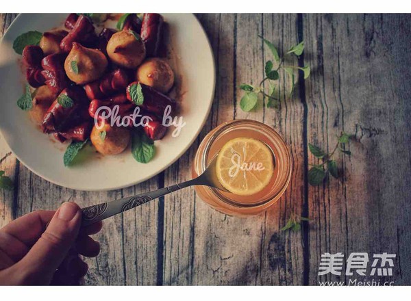 配上一杯青柠檬蜜,正点! 主料 脆皮肠6条 蟹籽丸6颗 辅料 蜂蜜1汤匙 休闲下午茶:蜜汁肠仔的做法 1.每根香肠分成三段,然后用剪刀斜着剪两道口,转半圈再剪两道口 2.香肠和蟹籽丸下油锅翻炒 3.炒至干锅后,加些水,盖盖煮熟 4.水干开盖后,加入一大勺蜂蜜,翻炒,炒至香肠和丸都沾上蜂蜜,有点焦焦更香。
