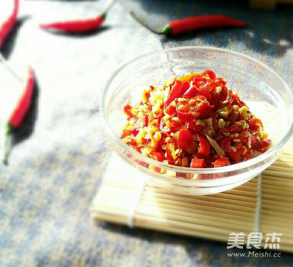 最简单的就是最美的。百搭的剁椒,送给无辣不欢的朋友。 主料 朝天椒250克 小米椒250克 姜1小块 蒜2个 辅料 盐5勺 白酒3勺 白糖1勺 熟白芝麻2勺 自制剁椒的做法 1.将辣椒洗净凉干去蒂。 2.将辣椒在无水无油的面板上切碎,蒜、姜切末,放到容器中。加入白芝麻,盐,糖,白酒拌匀。 3.放到容器中静置,然后放到洗净空干水的瓶中,放入冰箱冷藏几天即可食用。 4.腌好可以开吃了。 烹饪技巧 我用的是朝天椒和小米椒各半,亲可随意。 切板和容器一定要无水无油。