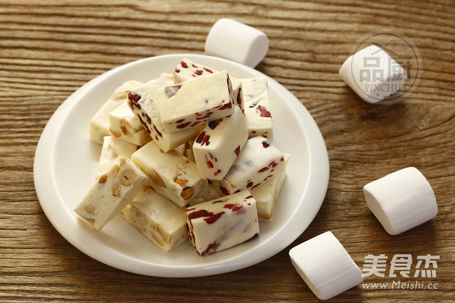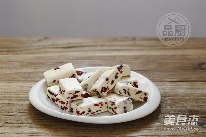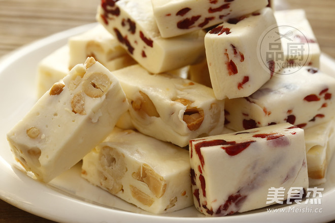 这个版本的牛轧糖替换了花生口味感觉更好吃,别外还可以加上抹茶,根据个人喜好哦(可做50块左右) 主料 棉花糖180克 黄油20克 奶粉120克 蔓越莓180克 蔓越莓牛轧糖的做法 1.蔓越莓先稍微切碎下备用 2.黄油倒入不粘锅里中火加热至溶化 3.倒入棉花糖一起继续加热并搅拌至棉花糖溶化 4.棉花糖溶化和黄油拌均匀,倒入奶粉拌均匀 5.再倒入蔓越莓干拌均匀 6.拌匀后关火迅速倒不粘盘里,用擀面杖擀平表面 7.再用刮刀旁边整形整齐后放冷藏冰箱冻一个小时 8.冷藏好取出切块即可 烹饪技巧 室温低的冬天可以不放冷藏冰箱,室温放至变硬可以切即可