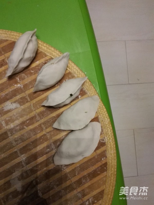 11.一个饺子里夹点素菜,再夹点肉,然后包好。