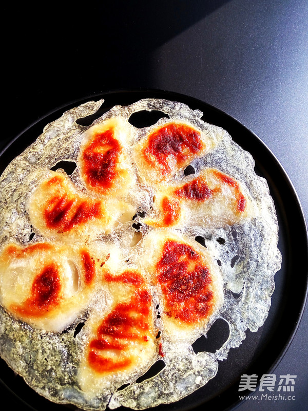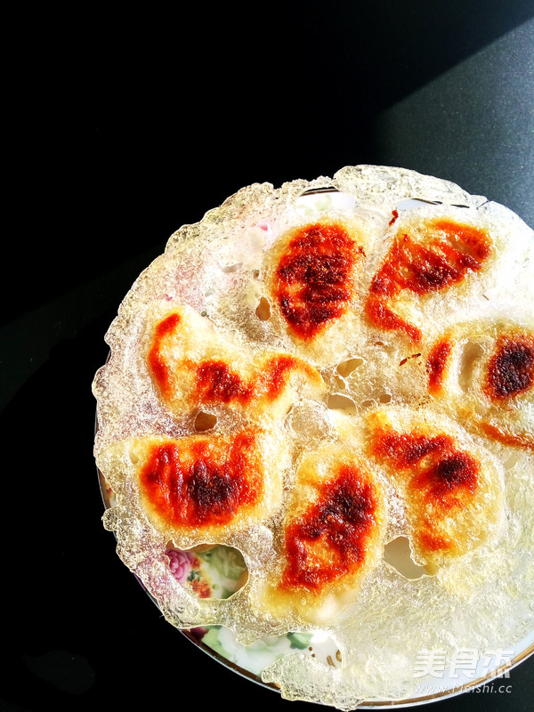 1. 用冷冻的生饺子煎的话,需要加少许水,盖上锅盖焖一会儿,不然怕熟不透。 2. 水淀粉可以调得稀一些,这样花纹处理更稀疏漂亮。